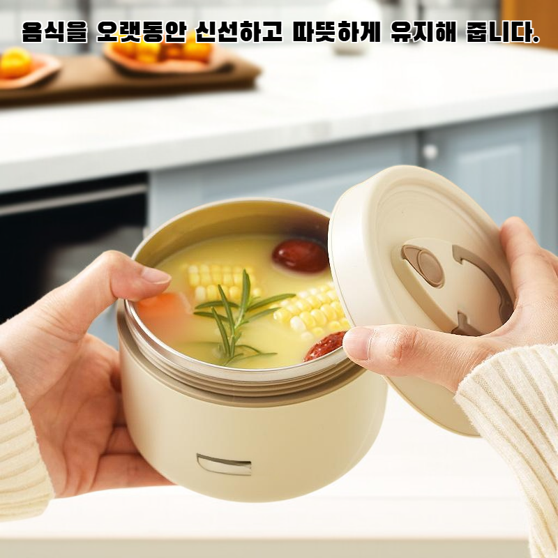 ● 프리미엄 스테인리스 소재로 제작되어 내구성이 뛰어나고 음식의 신선함과 온도를 오랜 시간 유지해줍니다. ● 세련된 디자인과 컴팩트한 사이즈로 가방에 쏙 들어가 휴대가 간편하며, 직장인과 학생 모두에게 적합합니다. ● 이중 진공 단열 구조로 뜨거운 음식은 따뜻하게, 차가운 음식은 신선하게 오래 보관할 수 있습니다. ● 뚜껑의 밀폐력이 우수해 국물이나 소스가 새지 않아 안심하고 이동할 수 있습니다. ● 세척이 간편한 구조로 위생적으로 사용할 수 있어 매일매일 깨끗하게 도시락을 준비할 수 있습니다.
