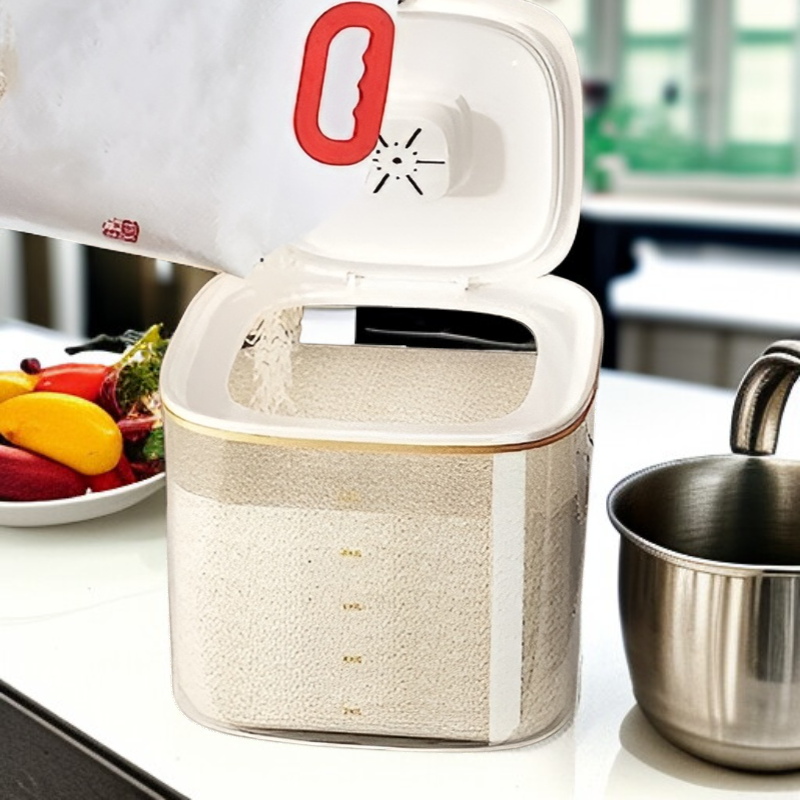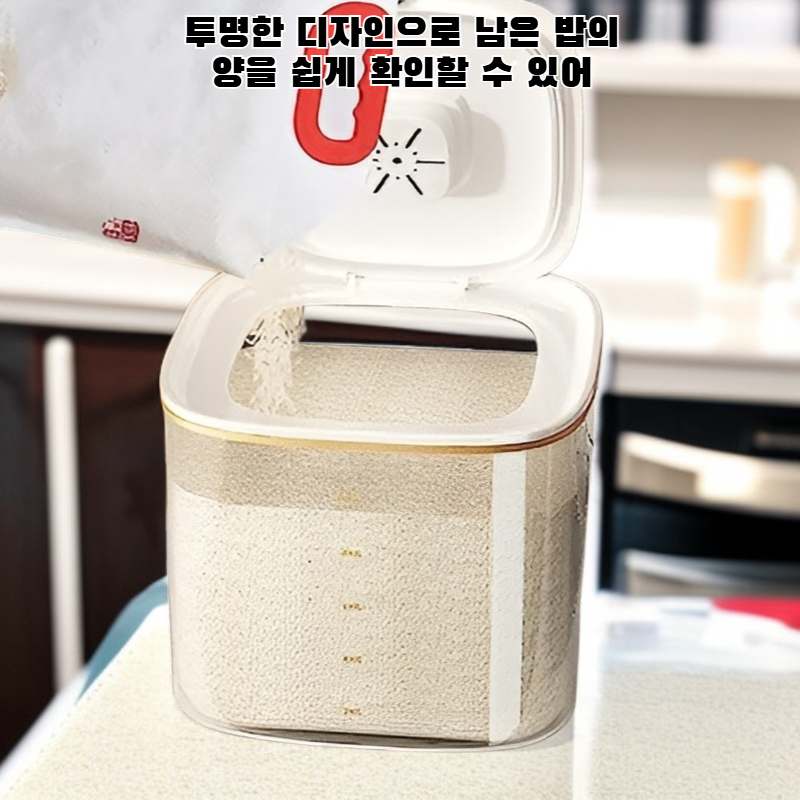 ● 쌀을 신선하게 오래 보관할 수 있는 밀폐형 설계로 곡물의 맛과 향을 그대로 유지합니다. ● 투명한 디자인으로 남은 쌀의 양을 한눈에 확인할 수 있어 편리하게 관리할 수 있습니다. ● 위생적인 소재 사용으로 쌀에 곰팡이나 벌레가 생기는 것을 효과적으로 방지합니다. ● 공간을 절약하는 슬림한 디자인으로 주방 어디에나 깔끔하게 보관할 수 있습니다. ● 손쉬운 쌀 투입 및 배출 구조로 누구나 간편하게 사용할 수 있어 매우 실용적입니다.