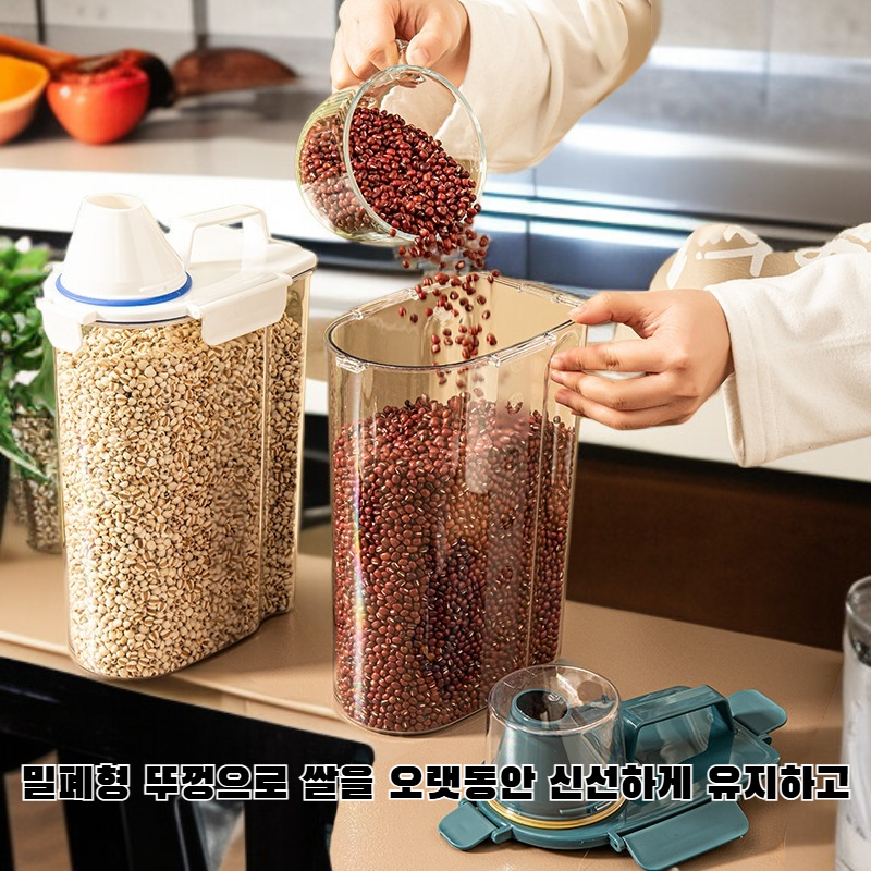 ● 대용량 설계로 많은 양의 쌀과 곡물을 한 번에 보관할 수 있어 주방 공간 활용에 탁월합니다. ● 밀폐력이 뛰어난 뚜껑으로 쌀의 신선함을 오래 유지하며, 벌레와 습기로부터 안전하게 보호합니다. ● 투명 창 디자인으로 남은 양을 쉽게 확인할 수 있어 쌀 부족 걱정 없이 편리하게 사용할 수 있습니다. ● 간편한 레버 방식으로 원하는 양만큼 쌀을 쉽게 꺼낼 수 있어 요리할 때 매우 실용적입니다. ● 내구성이 뛰어난 고급 소재를 사용하여 오랜 기간 변형 없이 깨끗하게 사용할 수 있습니다.